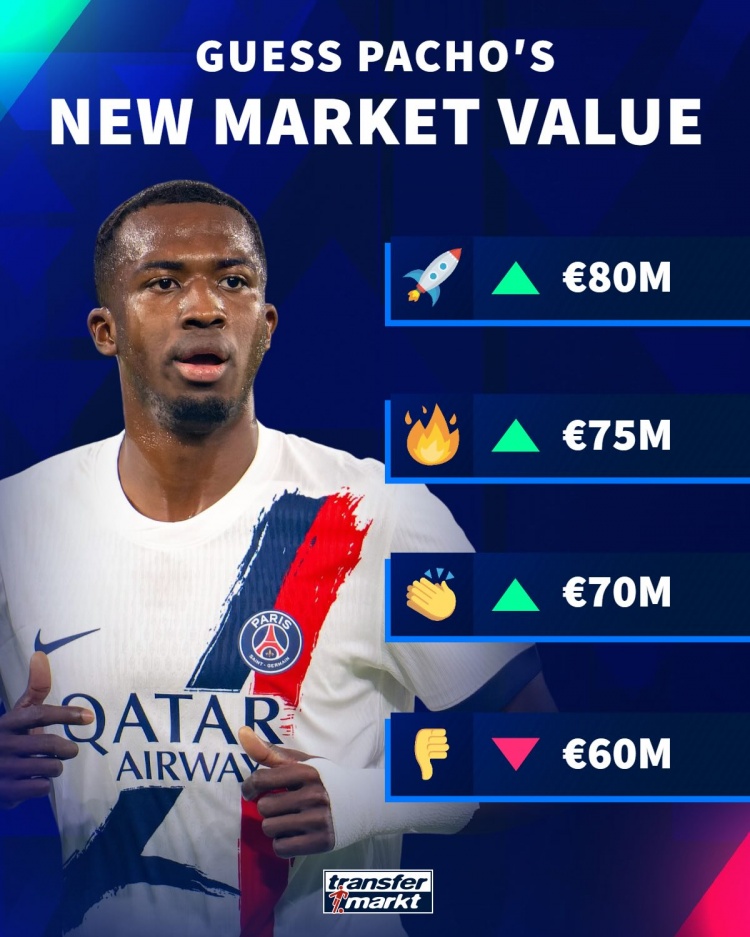 德转表示:“聚焦巴黎的新后防明星!你认为帕乔的新身价是多少?”